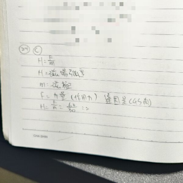 24 將一具有 30 單位磁極(unit pole)之磁性體置於磁場中,若其受到 60 達因的作用力,求該點之磁場強度為何?