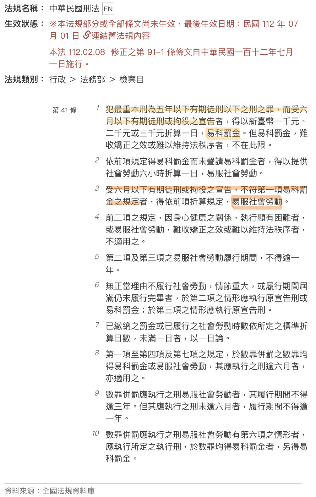 變成用41條第3項受六個月以下有期徒刑或拘役之宣告,不符合第一項易科罰金之規定者,得依前項折算規定,易服社會勞動
