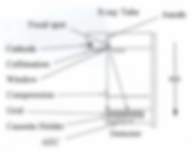28 與一般攝影所使用的 X 光管球做比較,下列何者不是血管攝影管球構造上的特點? (A) 輸出高 kV (B)大陽極靶 (C)柵控陰極 (D)小焦點