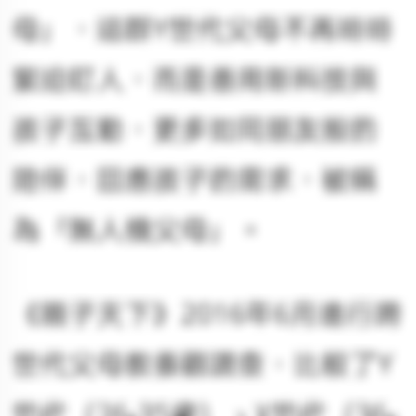受到成長經驗影響,育兒方式與一九六六到一九八○年間出生的前輩X世代父母大異其趣。 美國《時代》雜誌報導,形容Y父母的教養風格是「無人機父母」。藉著遙控可以抵達任何地方的無人機,給空間,但是仍保持影響力。「爸媽仍盤旋在孩子頭頂上,但更注重像朋友一般與孩子互動,而非指導。」