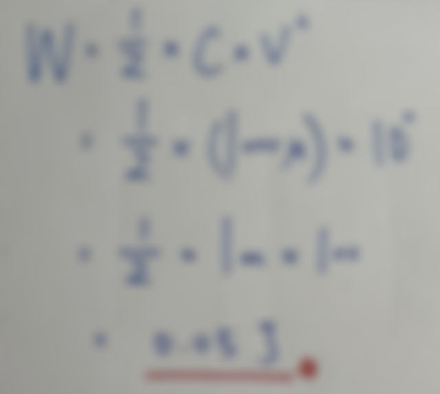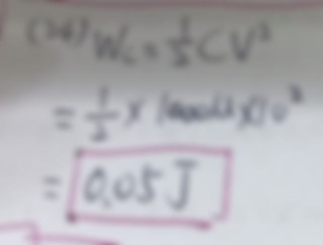 24.有一個 1000μF 的電容,充電後端電壓為 10V,則電容器所儲存的能量為多少?
