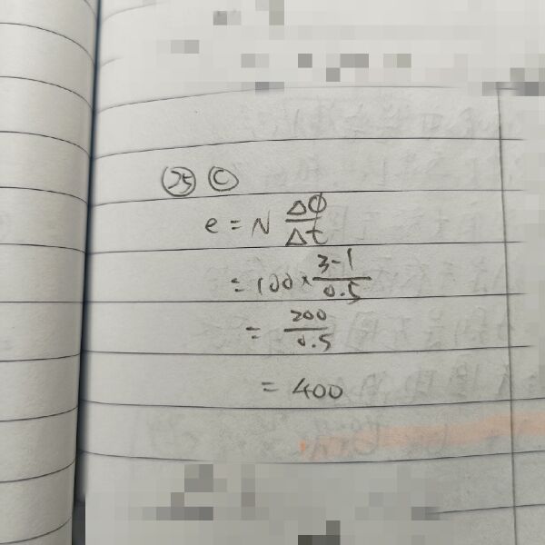 25 在 100 匝之線圈中,若磁通量在 0.5 秒內由 1 韋伯增加至 3 韋伯,則此線圈產生之感應電動勢為何?