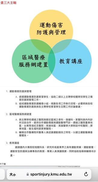 (C)運動防護與管理、運動防護教育與區域醫療網建置等工作