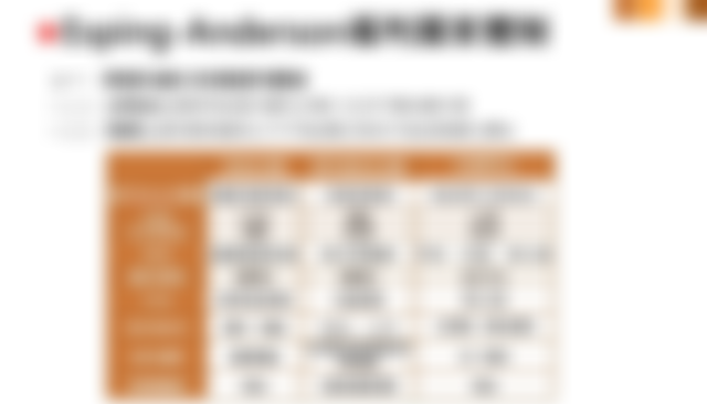 引發相當多的討論。有關 Esping-Andersen 所著的「福利資本主義的三個世界」,並不包括那一