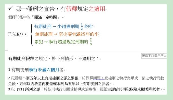 受徒刑之執行而有後悔實據者,無期徒刑逾二十五年,有期徒刑逾二分之一,累犯逾三分之二者。 |