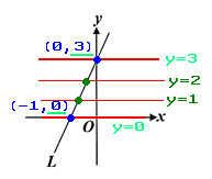 如圖,求出直線方程式L與兩軸之交點(0,3)、(-1,0)