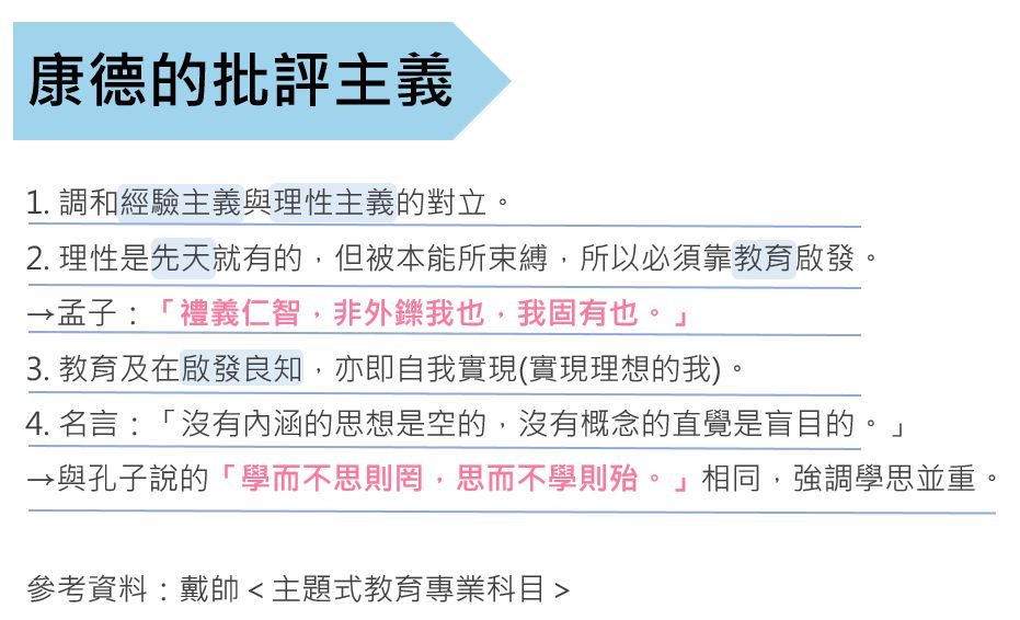 康德曾說:沒有內涵的思想是空的,沒有概念的直覺是盲的,這反映在教育學理上的話,可用孔子的一句話概括:學而不思則罔,思而不學則殆。