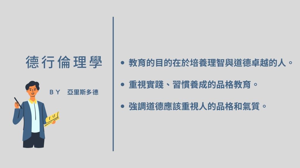 (B) 透過品德核心價值的實踐,培養學生正確的道德行為與習慣→德性倫理學