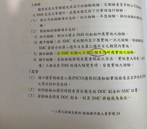 25. 國家政府主管機關或其認可的檢驗機構,應定期檢查其管轄公司及船舶之SMS是否正
