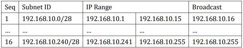 25. Take four Host IDs from the 192.168.10.0/24 subnet for segmentation. How can seq1 and seq16 be best described?