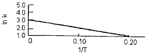 25. The equilibrium constant of a certain reaction was measured at various temperatures to give the plot shown below. What is ΔS° for the reaction in J/mol·K?