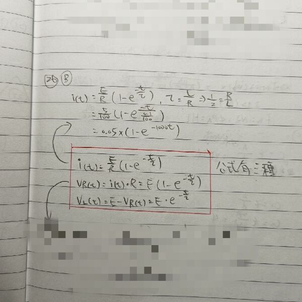 26 如圖所示之 RL 電路,其中 R=100 Ω(歐姆),L=0.1 H(亨利),V=5 V(伏特),且初始條件 i(0)=0, 求 t>0 時,電流 i(t)為多少安培(A.)?