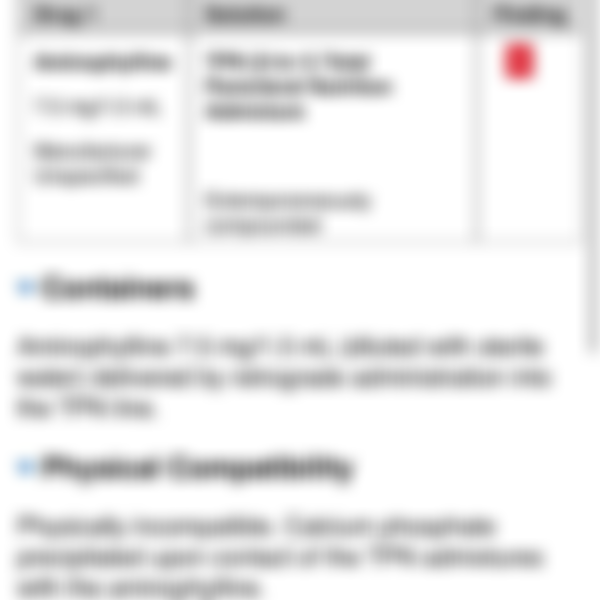 2 in 1 TPN 由 Y-site 一起輸注時,aminophylline、phenobarbital sodium、phenytoin sodium 有可能產生配伍禁忌