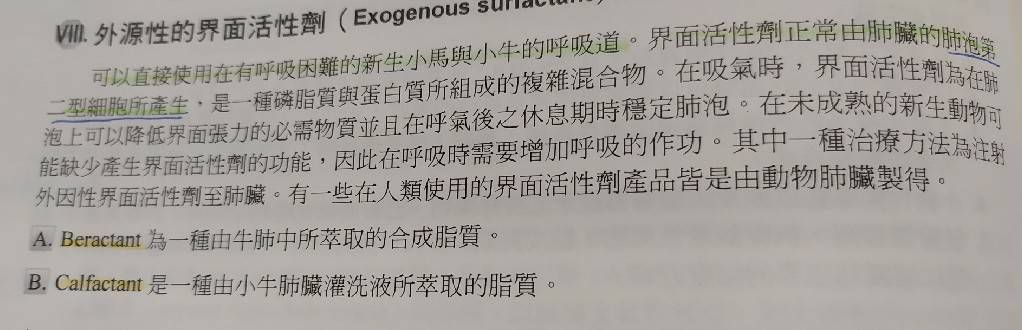 26.早產新生動物因先天性缺乏介面活性劑導致呼吸窘迫症(respiratory distress syndrome),下列何者療效最佳?