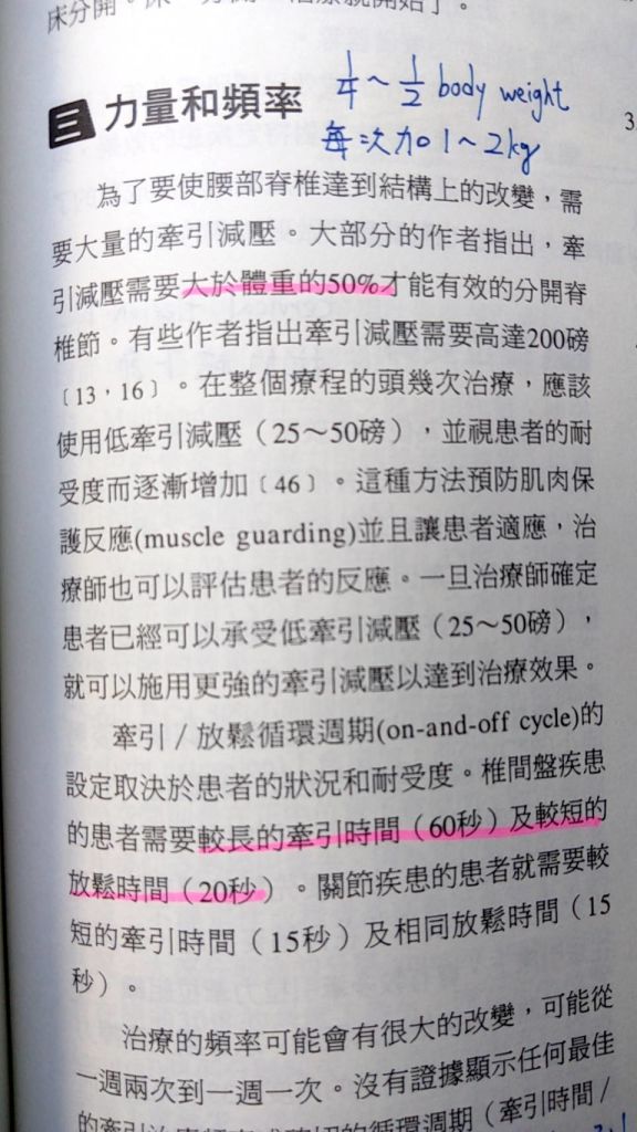 (C)至少須大於體重1/2的牽拉力,才能有效分開脊椎節