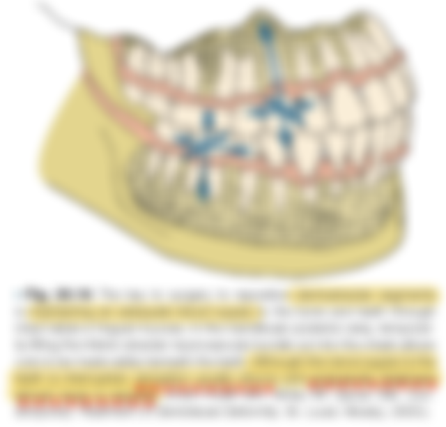 An osteotomy below the root apices cuts the nerves to the pulp of the teeth in that segment, and of course there is no collateral innervation.根尖下截骨術會切斷這區域連接至牙髓的神經,C正確