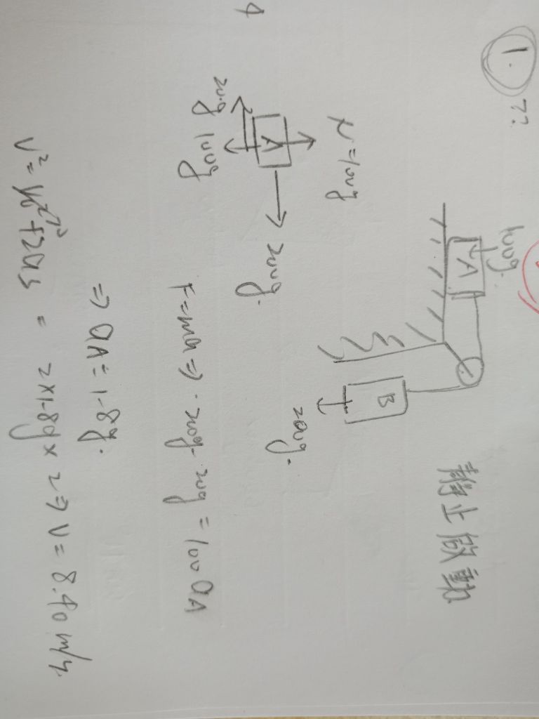 26. 如右圖所示,若系統由靜止開始啟動,求 A 移動 2 公尺時之速度為何?