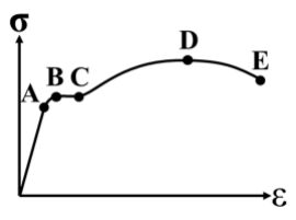(A) 在BC段為完全塑性,且材料沒有明顯應變硬化