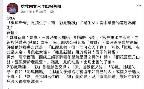 雛鳳新聲」是指生子,而「彩鳳新雛」卻是生女,當中意義的差別為何呢?