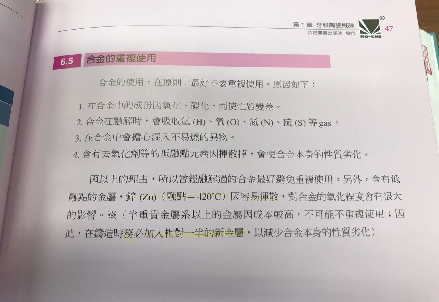27 原則上,合金最好不要重複使用。因為下列那一種元素容易揮散,對合金的氧化程度會有很大的影