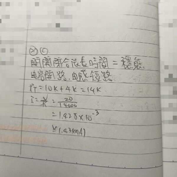 電感短路 電容斷路 20/(10K+4K) = 1.43mA