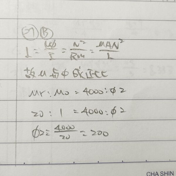 27 有一鐵磁物質的相對導磁係數為 20,將導線繞在此鐵磁物質上通以電流產生的磁力線為 4000 線,若
