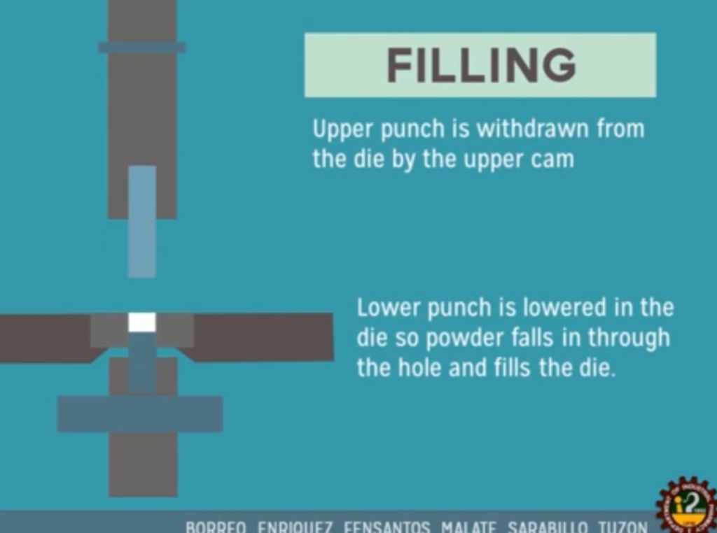 (A)上沖模(upper punches)的位置