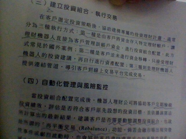 理財機器人服務流程:暸解客戶(KYC)、提供投資組合建議、建立投資組合執行交易、自動化管理與風險監控