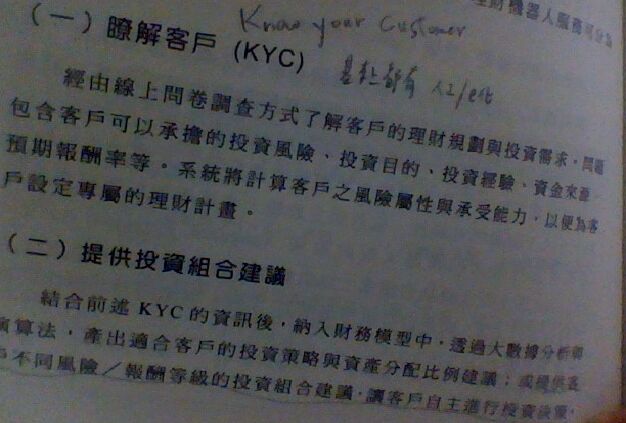 A.可經由線上問卷的方式了解客戶的理財規劃與投資需求—瞭解客戶(KYC)