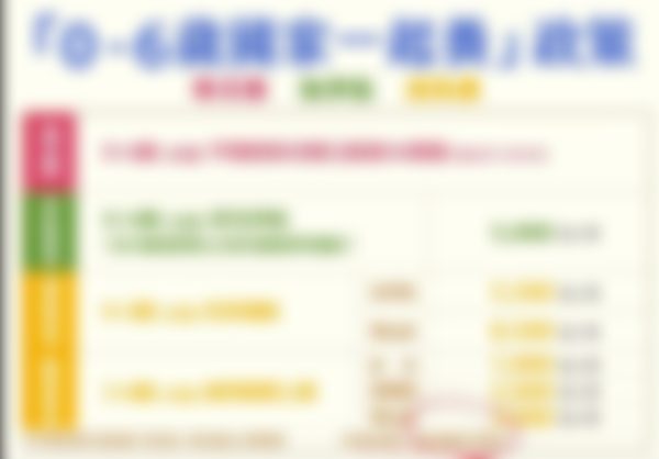 2023年1月起,0至未滿5歲「育兒津貼」、0至未滿2歲「托育補助」將取消排富規定;5至未滿6歲幼兒就學補助,也將擴及未就讀教育服務機構之幼兒,讓0至6歲幼兒全面受到照顧,讓政府成為年輕爸媽的神隊友。