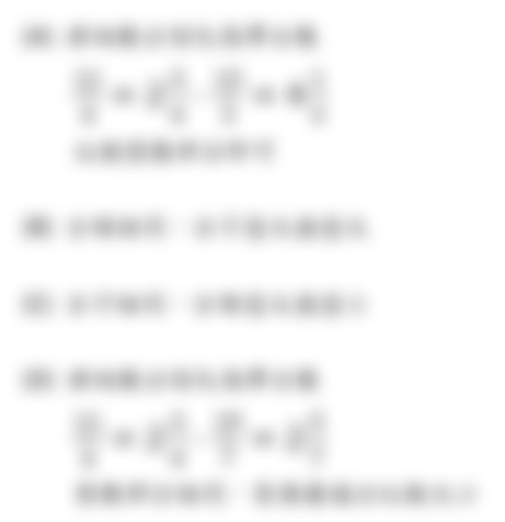 (D) 11 /4 、 19 /7-->換成帶分數:2又3/4、2又5/7-->分母分子皆不同,故需通分