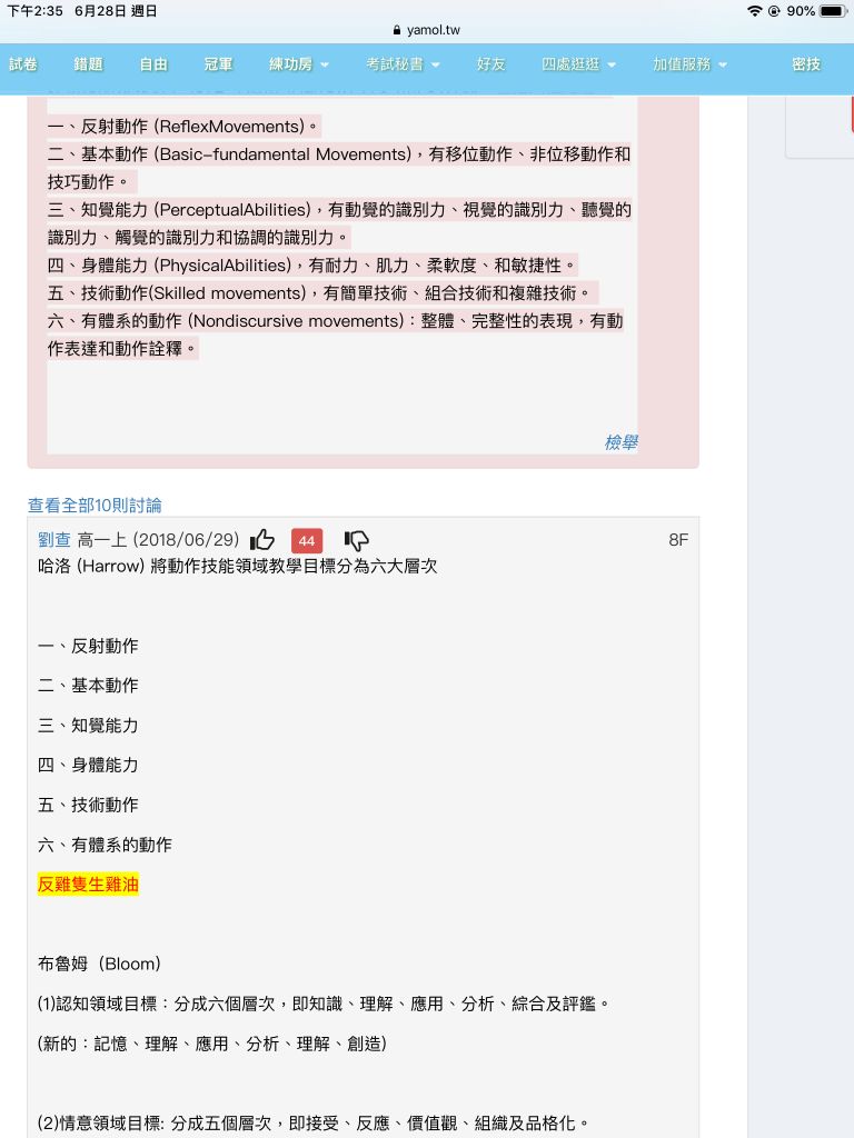 27.趙老師在體育課中指導學生進行跳繩之「一跳二迴旋」技巧。他根據技能領域目標