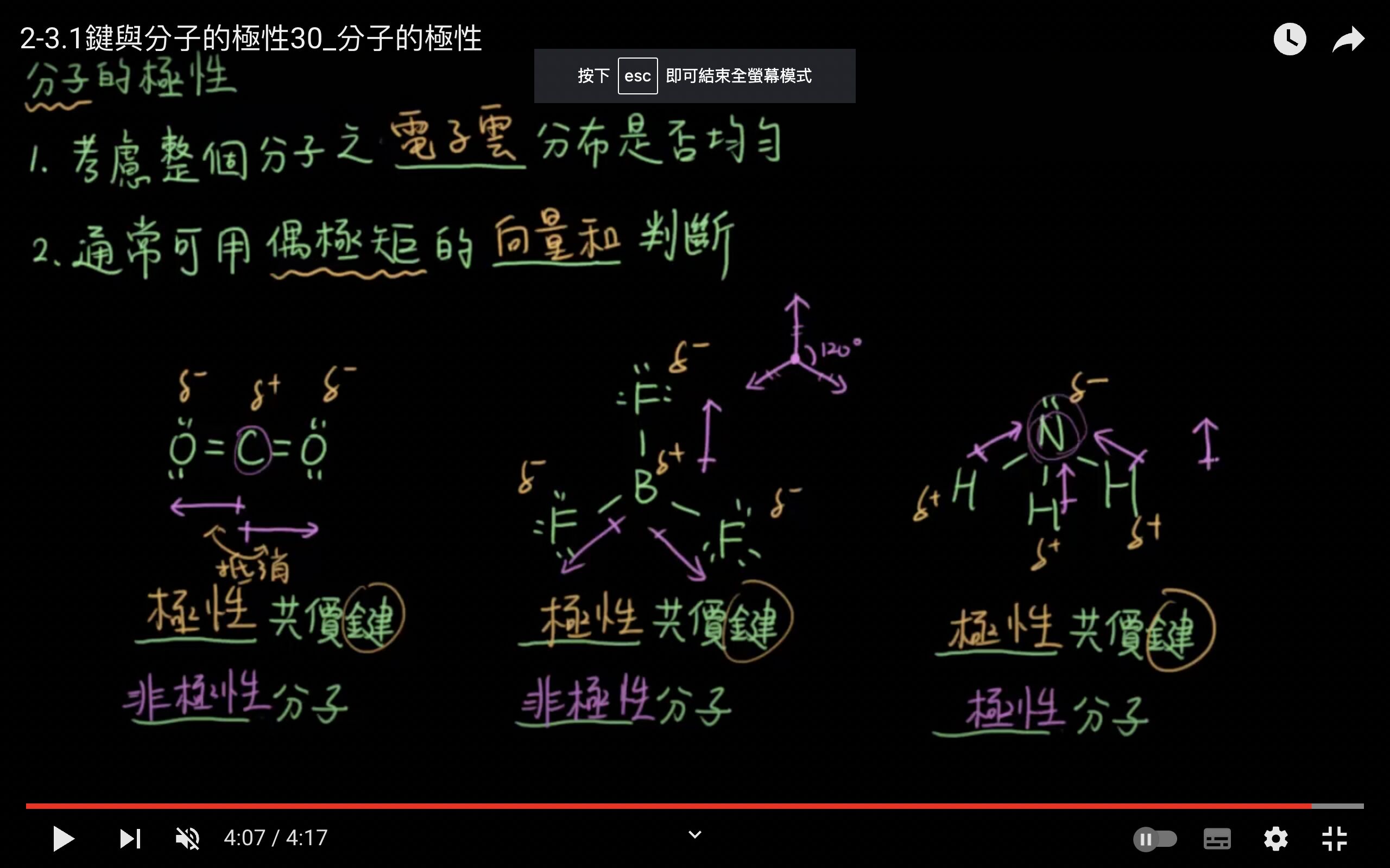 CH4:四個H原子彼此電荷排斥,在空間中形成能使電荷平衡的位置型態(角度109.5°),非極性。