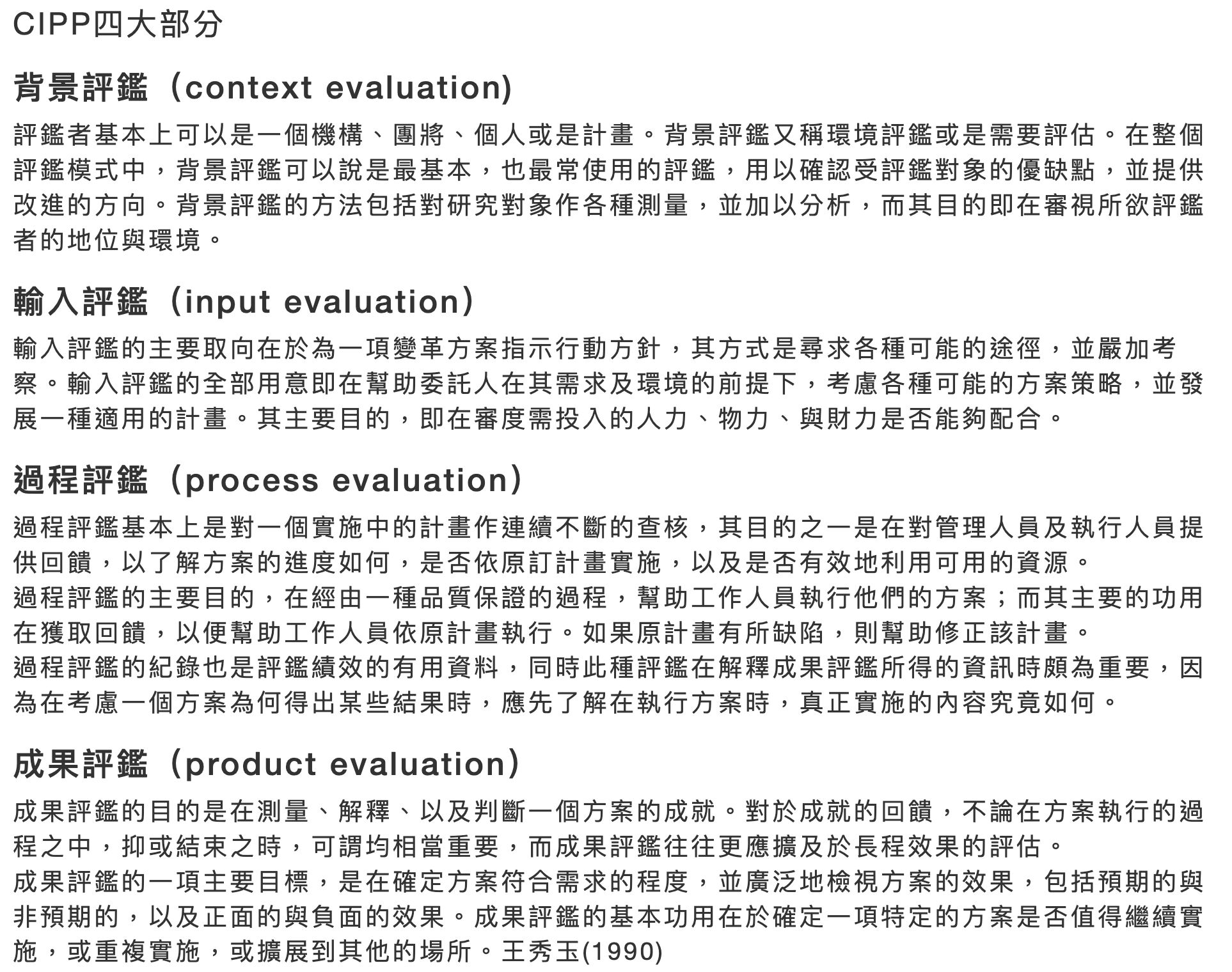 https://pedia.cloud.edu.tw/Entry/WikiContent?title=CIPP%E8%A9%95%E9%91%91%E6%A8%A1%E5%BC%8F&search=CIPP%E8%A9%95%E9%91%91%E6%A8%A1%E5%BC%8F