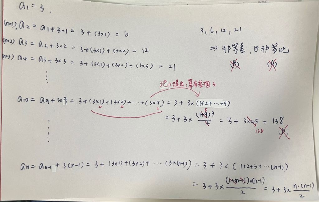 出題老師要出的題目公式應該是an=a1+3(n-1)