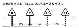 27. 請問從16號反光號誌到第32號,共有多少距離?(A)180 (B) 192 (C) 204 (D) 216 m。