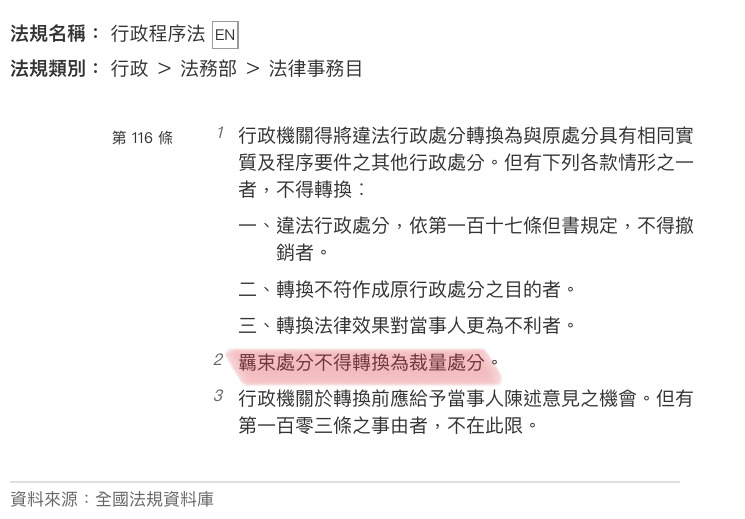 (D) 行政程序法 第116條 第2項