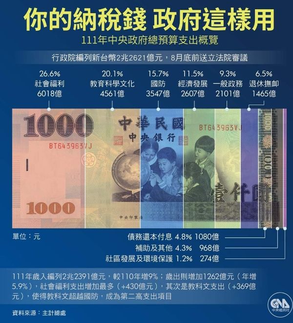 社會福利、教育、國防優先。