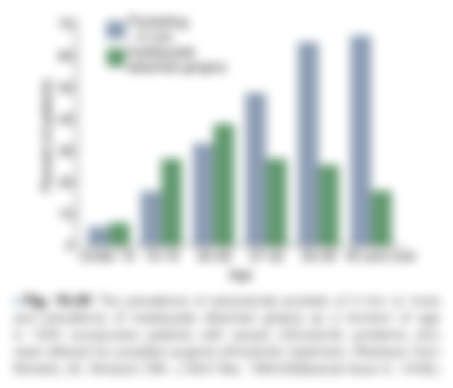 (A)40歲前牙周囊袋深度 > 5 mm的發生率,與年齡成正比
