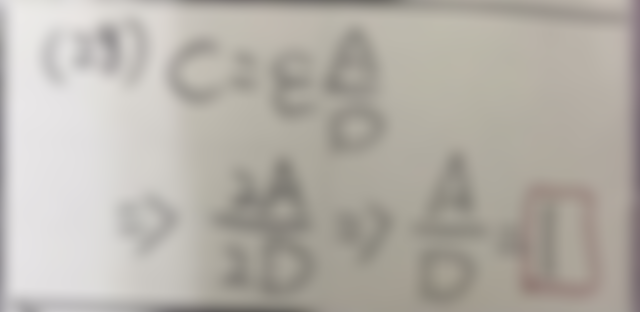 28.若將一平行板電容器的面積增加為原來的 2 倍,板間距離增加為原來的 2 倍,則其電容量會變 成?