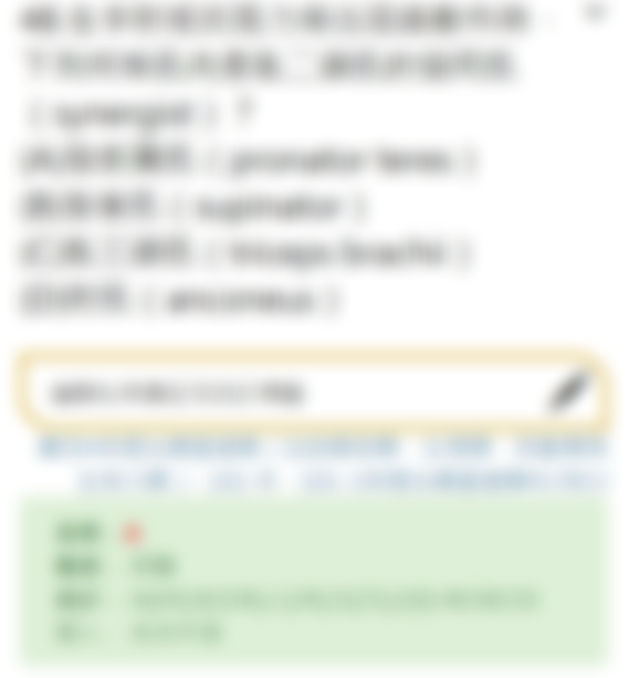 28. 在手肘抵抗阻力做出屈曲動作時,下列何條肌肉是肱二頭肌的協同肌(synergist)?