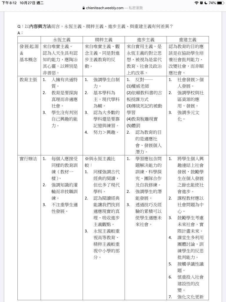 與下列何學派課程設計的理念最為相近﹖