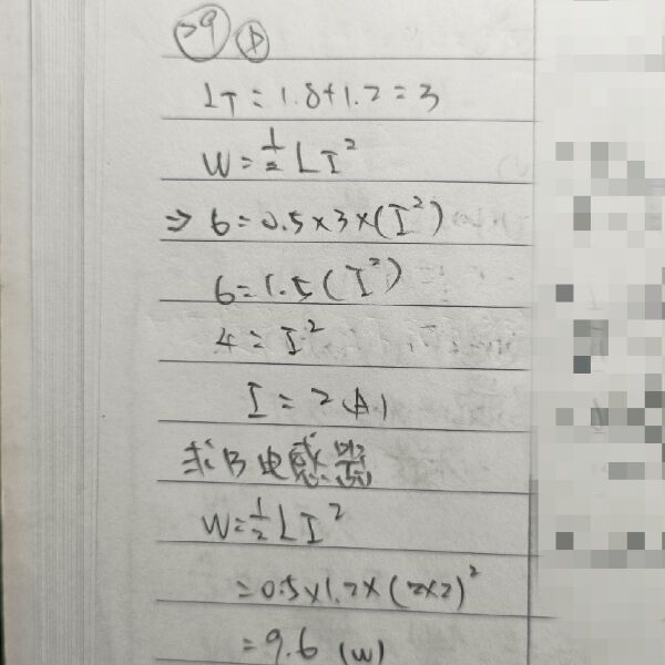 時總儲能為 6 焦耳,當電流為 2I 時電感器 B 之儲能為多少焦耳?