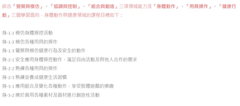 何者不是幼兒課綱身體動作與健康領域要培...
