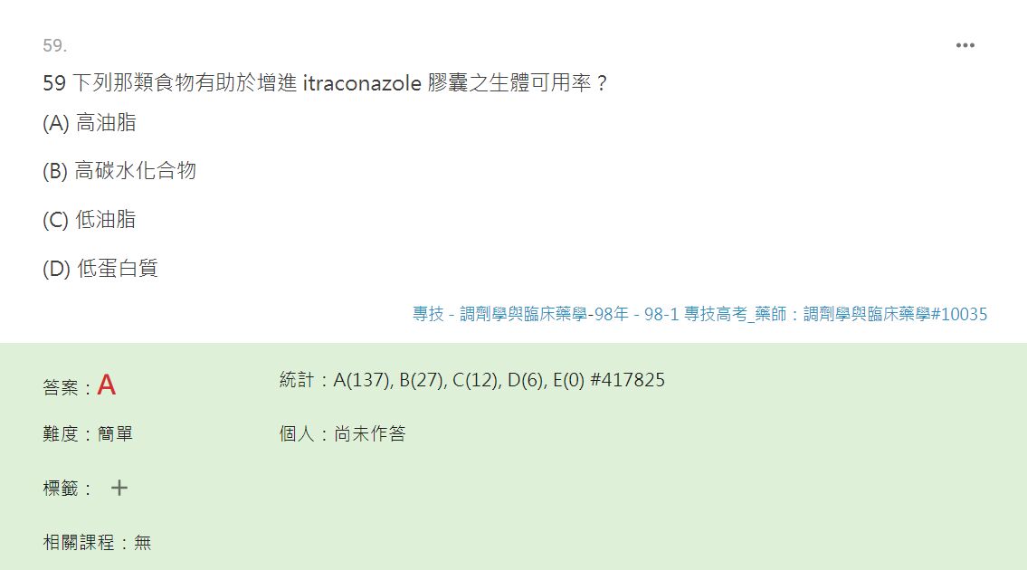在有食物的狀況下 ketoconazole吸收較好