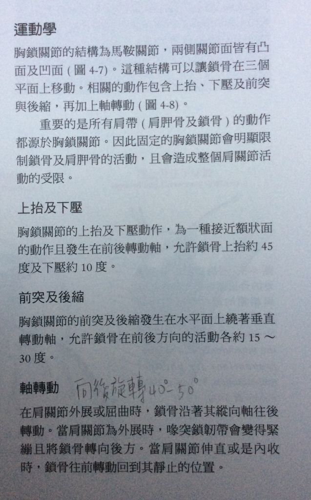 29.有關胸鎖關節(sternoclavicular joint)動作之敘述,下列何者正確?