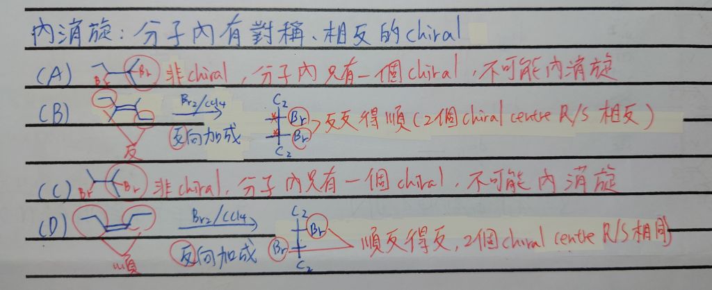 29. 下列哪一種烯類在常溫下與 Br2/CCl4 反應會得到雙鹵素內消旋化合物(meso dihalide)?