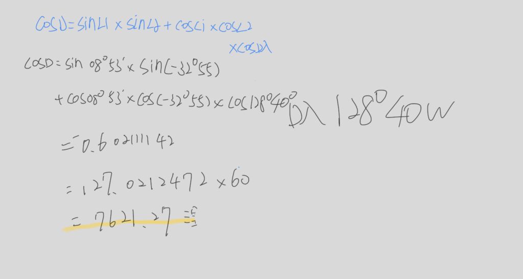 29. 若船長採用大圈航法(great circle sailings)航行,則大圈距離為多少海浬?