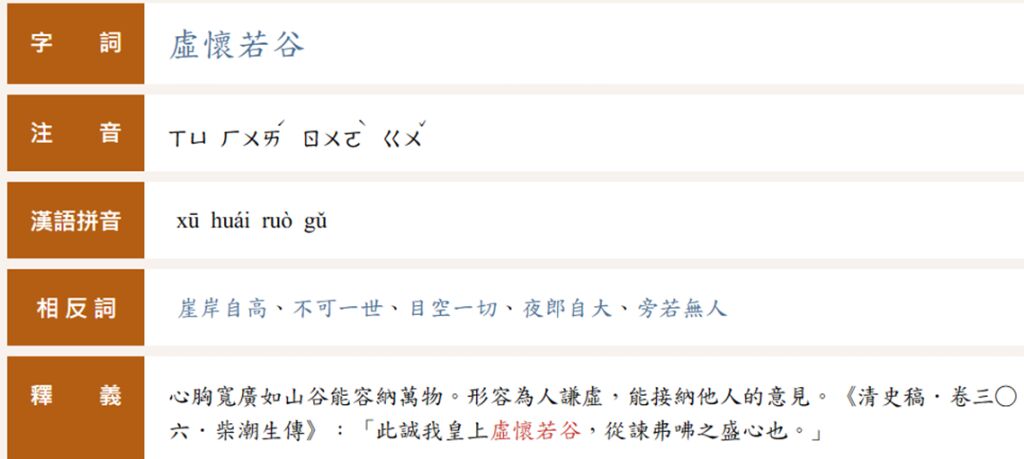 | 虛懷若谷 | 形容為人謙虛,能接納他人的意見 |