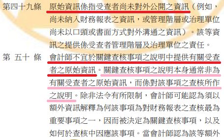 CPA不宜於KAM提供受查者之原始資訊(尚未對外公開之資訊)。